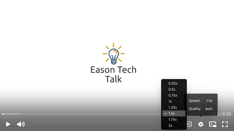 影片播放器支援調整影片速度,您可以使用合適的影片速度進行學習,如果習慣比較快的語速,推薦使用 1.5x - 2x 倍速觀看課程內容。